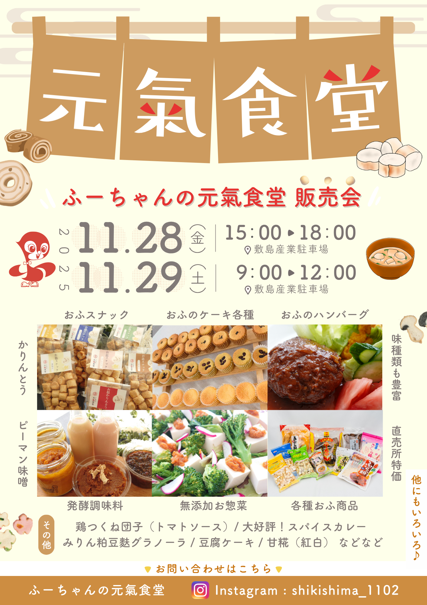 2025年11月の、『お麸で健康貯金』料理教室のご案内を公開させて頂きました。お申し込みをお待ちしております!https://ofu.co.jp/schools28日、29日は販売会も行います。詳細はチラシをご確認ください。